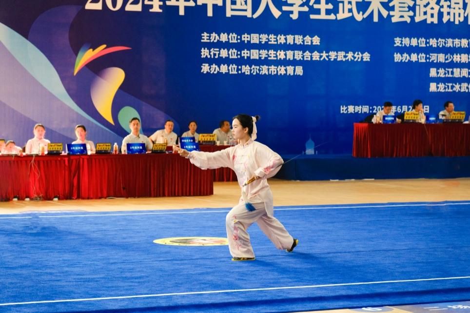 由中国大学生体育联合会主办中国大学生体育联合会大学武术分会执行、哈尔滨市教育局支持、哈尔滨市体育局承办的2024年中国大学生武术套路锦标赛(甲、乙组)于6月2-8日哈尔滨举行。此次比赛吸引了来自全国256所高校的1500余名运动员参赛。