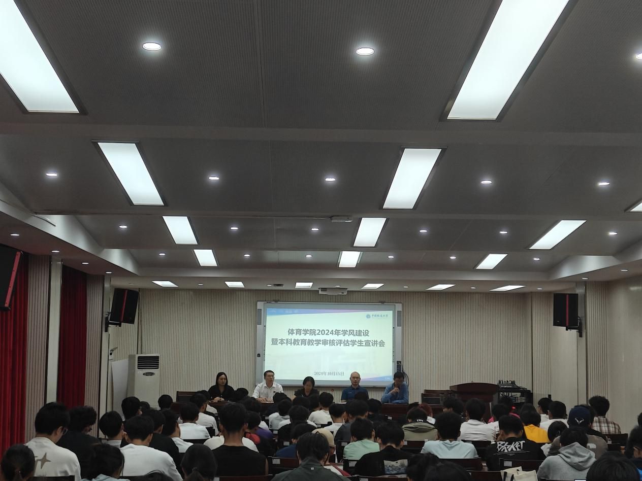 为加强学院学风建设,引导全体学生掌握新一轮审核评估基本知识,继10月9日学院组织全体本科生学习审核评估应知应会和学风建设动员会之后,污漫画 于10月15日18点再次在体育馆三楼科报厅召开2024年学风建设本科教育教学审核评估学生宣讲会,坚持问题导向,对本科教育教学审核评估工作进行再动员、再部署、再促进,同时以评估工作为契机,进一步强化学院学风建设工作。污漫画 党委书记庞岚、院长李元、副院长刘良辉、党委副书记朱军和全体本科生参会,会议由辅导员陈爽老师主持。