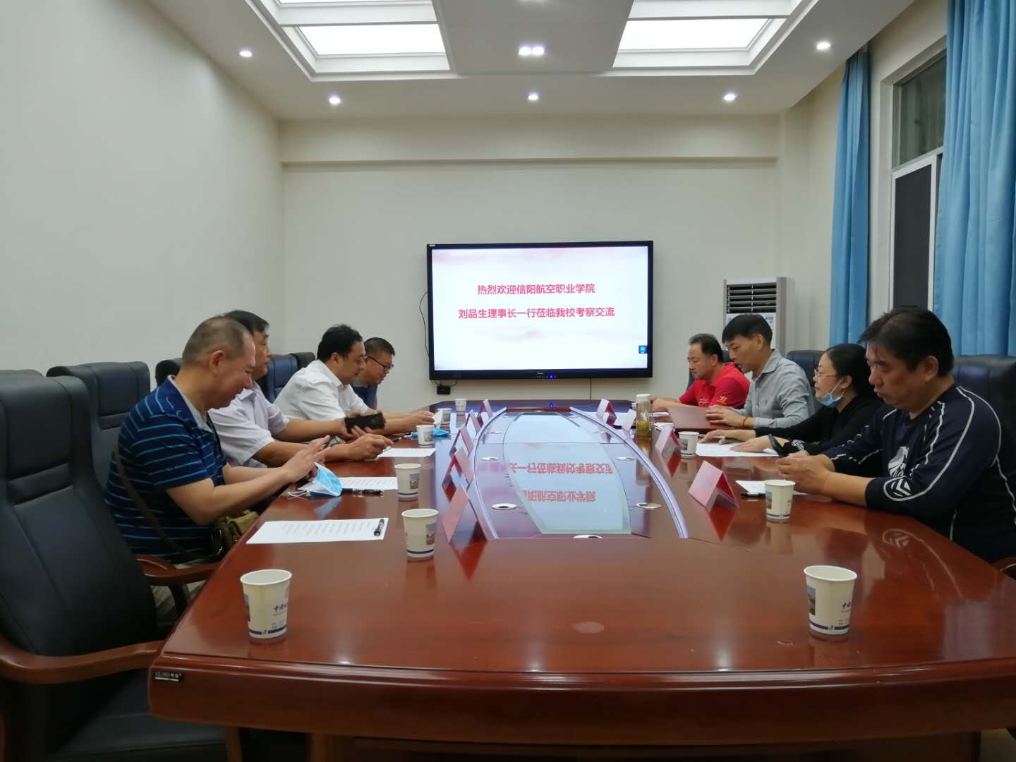 9月15日上午,河南信阳航空职业学院来污漫画 洽谈合作办学,庞岚书记、董范院长以及相关老师出席并参与会谈。