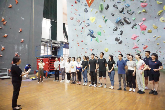 辅导员老师们还集中观看了污漫画 攀岩运动员在速度攀岩、难度攀岩和攀石三个项目的表演展示,并在助教团队的带领下进行速度攀岩与难度攀岩尝试,通过亲身体验的方式感受攀岩运动的魅力与乐趣。