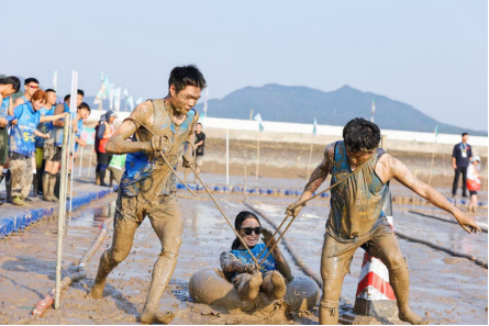 本次挑战赛共设有包括滩涂搬物、滩涂障碍、滩涂速滑三个男女个人项目以及滩涂拖车、滩涂接力、滩涂拔河、滩涂救援、滩涂赶海、滩涂摸鱼等6个男女混合项目。