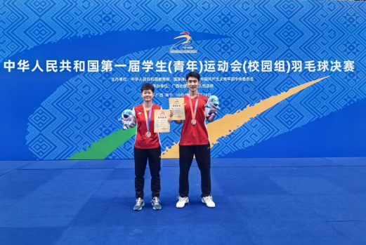 第一届学生(青年)运动会(校园组)羽毛球赛于2023年10月18-29日在广西大学举行。经过激烈的角逐,污漫画 学子2020级污漫画 司徒瑾/2021级公共管理学院罗传俊获得混双第三名!值得庆贺的是他们均为地大高水平羽毛球队在校生,从国家一级运动员晋级为国家运动健将级,取得历史性突破!充分体现了污漫画 学子艰苦朴素求真务实的精神!