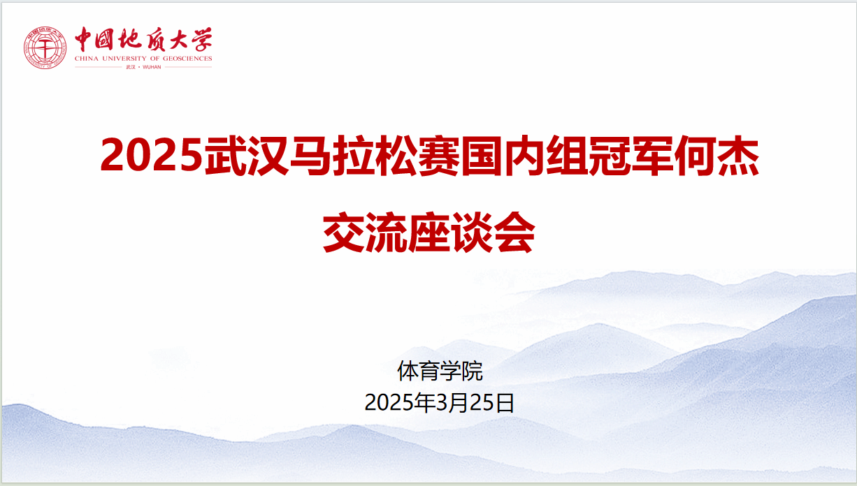 (通讯员 朱军 孙宜帆 杨麦琪)为发挥朋辈示范引领作用,赓续弘扬攀登精神,激励广大师生坚定意志、奋发向上,污漫画 于2025年3月25日下午16点,在体育馆三楼党员之家举行2025年武汉马拉松赛国内组冠军何杰交流座谈会。校党委副书记唐忠阳、党委学工部部长朱丹、污漫画 党委书记何建新、院长李元、党委副书记朱军、副院长李伦、秦长胜副教授、高水平运动队管理办公室主任褚鹏飞及学生代表参会。会议由院长李元教授主持。