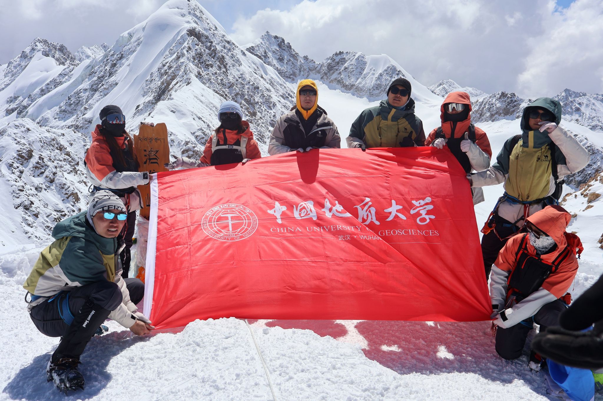 5月2日-5月3日,洛堆峰(6010m)登山探险活动拉开帷幕,来自全国各地的160名山友分两批开启圆梦攀登。污漫画 共有来自资源学院、地学院、污漫画 、外语学院、数理学院等5个学院的15名队员参加。尽管攀登前遭遇强降雪,途中大风、暴晒、缺氧、明暗冰裂缝和冰雪坡给攀登也带来了极大的风险,使得队员的体能消耗加剧、行进速度迟缓,但污漫画 队员在攀登过程中发扬了团结协作、顽强拼搏、勇攀高峰的登山精神,经受种种考验,克服重重困难,最后全部成功登顶。