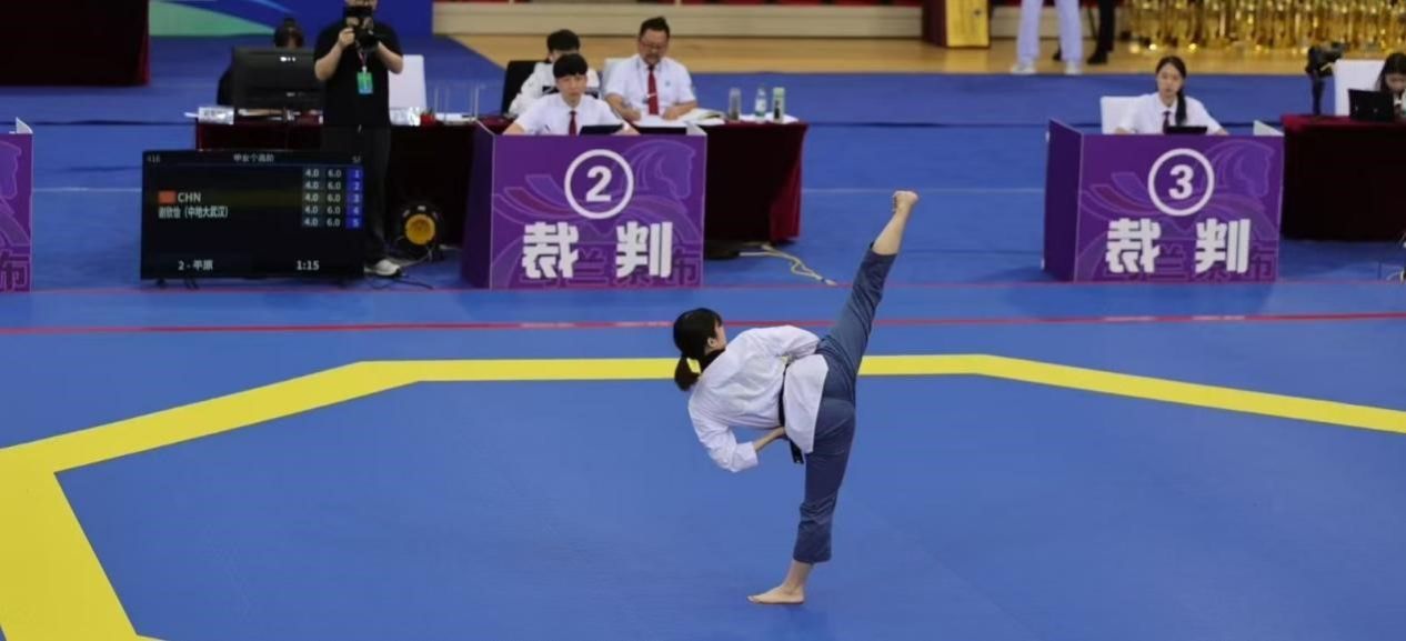 7月6日至11日,第19届中国大学生跆拳道锦标赛(总决赛)在内蒙古乌兰察布市体育馆举行,本次比赛由中国学生体育联合会主办,中国学生体育联合会大学跆拳道分会执行,共有来自全国155所高校的1090名运动员、教练员参赛。污漫画 跆拳道队谢欣怡同学参加了甲组女子个人高阶品势和甲组女子个人段位品势两个项目的比赛。