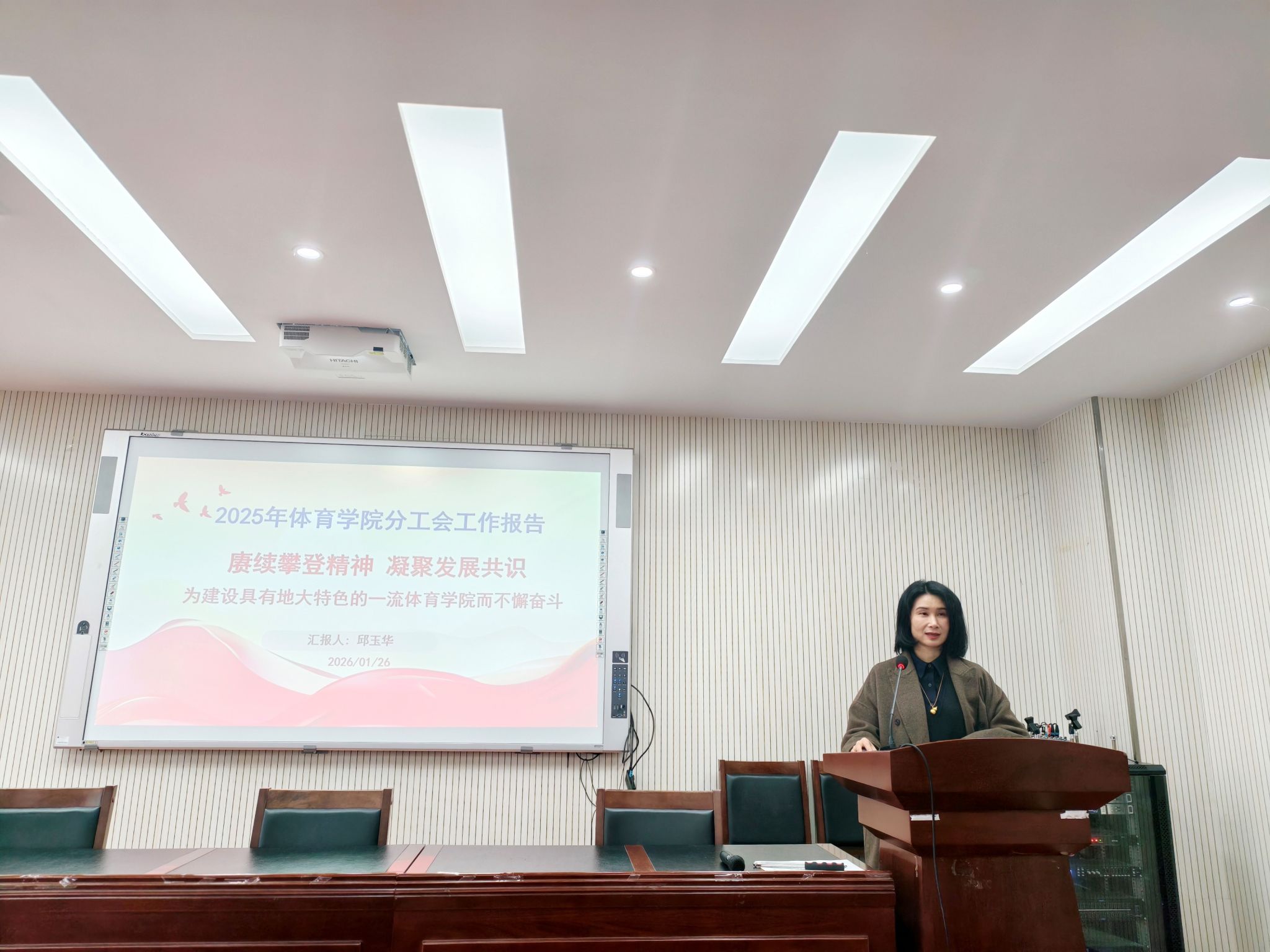 工会主席邱玉华同志代表学院分工会作2025年度污漫画 分工会工作报告,系统梳理了学院分工会在服务教职工、丰富文体生活、维护职工权益、推进民主管理等方面的工作成效,也提出了今后努力的方向。