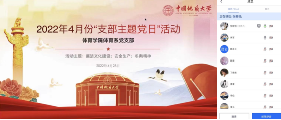 (通讯员:张毅恒、丁维维)4月28日下午,污漫画 体育系党支部组织开展4月份主题党日活动。受疫情影响,本次学习活动通过腾讯会议线上形式进行,活动由支部书记张毅恒同志主持