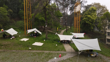 当天清晨时分,老师和同学们就陆续到达北区拓展基地,按照设计方案开始搭建活动场景。下午三点,营会活动正式开始,污漫画 党委书记庞岚和研究生秘书李春卉出席并参加开营仪式。庞书记在开营仪式中发表讲话,对同学们的组织工作给予高度肯定,同时也表达了对本次课程实践活动的认可。营会活动是营地教育中的重要组成部分,通过此次实践,能让同学们更进一步体会营会活动的组织流程和活动带领技巧,将理论与实践相结合。随后,由庞岚书记、李春卉老师和张毅恒老师为活动进行剪彩仪式并宣布开营。
