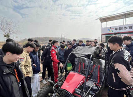 在报告结束后,张能勤总经理带领全体师生参观考察了汽车越野场地赛道,详细讲解赛道设计规划的标准、分类以及安全性能等专业知识,给同学们传授了越野车驾驶的基本技术,强调了越野驾驶的注意事项。随后,同学们在练习场地进行了基本技术操练,并在越野赛道分组进行了不同排量越野车的驾驶体验