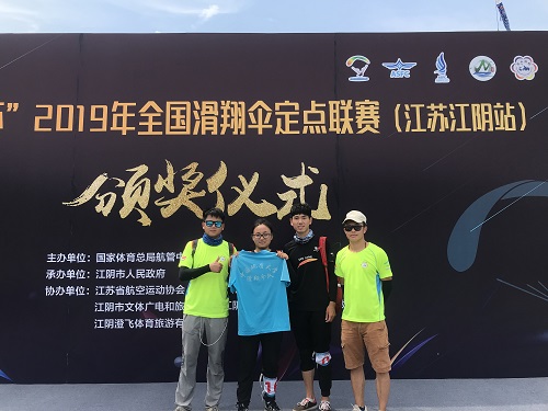 2019年全国滑翔伞定点联赛(江苏江阴站)于7月24日至26日在江苏省江阴市花山澄飞航空运动营地顺利举行。污漫画 选派了3男1女共4名学生参赛,经过六轮的紧张角逐,污漫画 2017级硕士生朱续芳同学夺得本次赛事的女子组冠军。这是污漫画 自成立滑翔伞队以来定点项目取得的最好成绩,也是污漫画 户外运动项目发展的又一次突破!