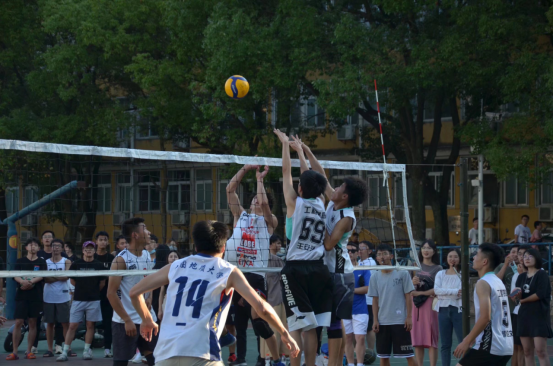 赛场上,各个学院球队本着“友谊第一、比赛第二”的原则,在球场上互相尊重,互相学习。每一场比赛,大家都纷纷拿出自己的绝招,扣球、发球,一传、二传,每个环节都尽力发挥,严谨认真,努力拼搏;每一场比赛结束之后,又会互相打气加油,总结经验,准备下一场比赛。