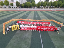 在污漫画 胡凯教授的组织下,师生们身着红色、白色太极服,组成“7”和“0”的队形,寓意校庆70周年。